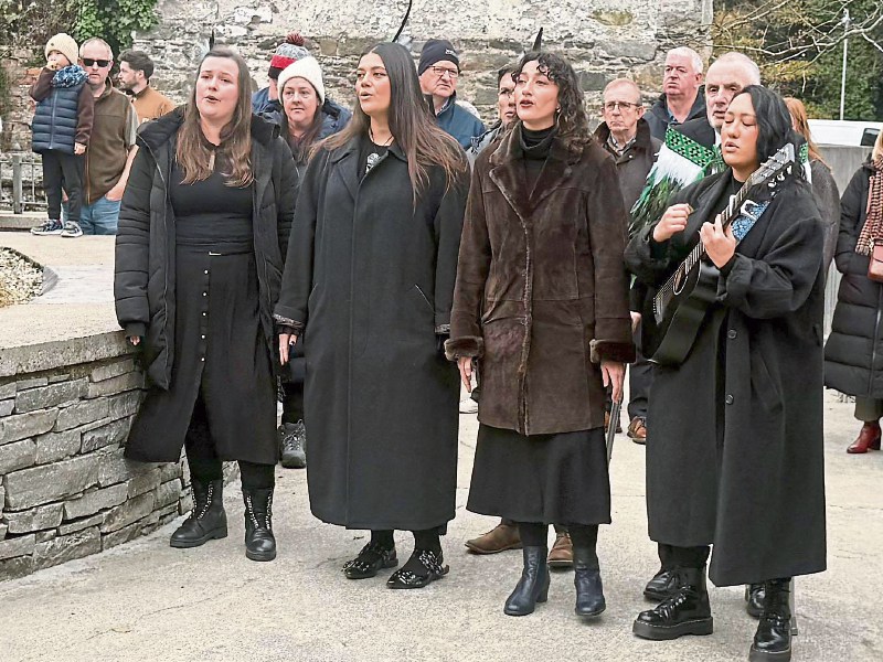 Singers from New Zealand perform at Sunday’s special event in the Dave Gallagher Memorial Park in Ramelton.