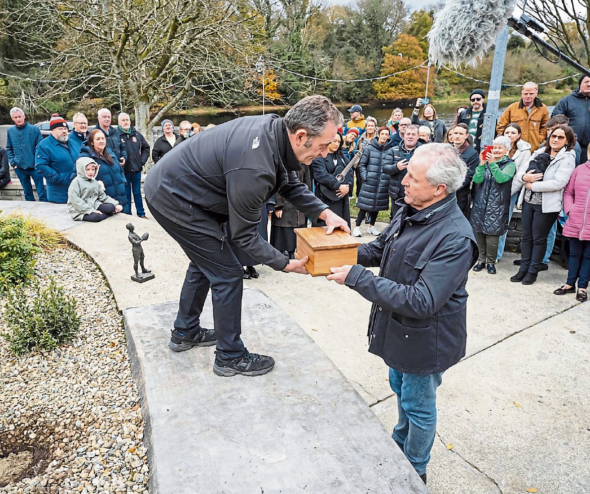 His visit was, of course, connected to the legendary Gallaher – carrying as he did a wooden box containing turf dug up from the famous Eden Park rugby ground which he presented at a special ceremony on Sunday at the Dave Gallaher Memorial Park overlooking the river Lennon.