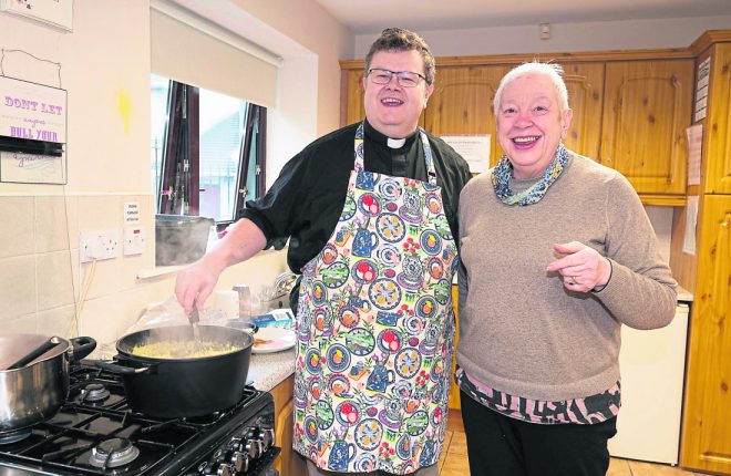 Margaret Nairn and Valerie Bright getting the breakfast ready at the Conwal and Gartan mens breakfast in Conwal on Saturday last.