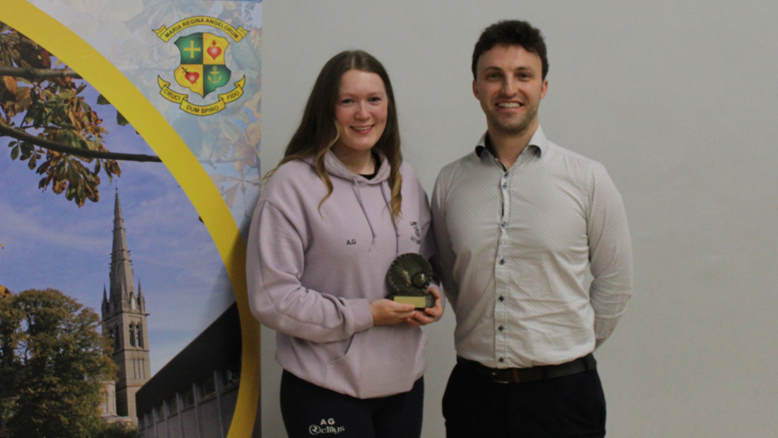 Pictured is Alisha Gallagher receiving the Elaine Winston Memorial Award for Senior Gaelic Football player of the year at Loreto Secondary School in Letterkenny.