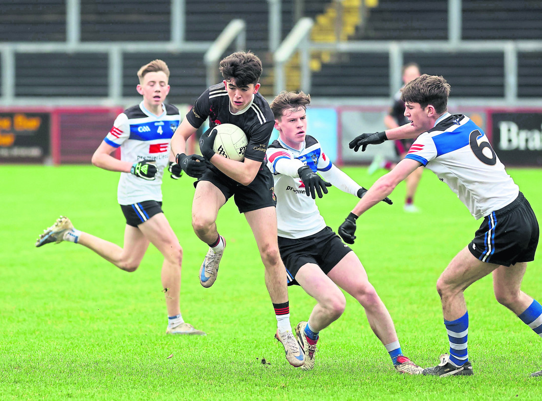 St Eunan’s College: James Toner; Senan Kelly. Oisin Higgins, Adam Moore; Luke Gallinagh, Ryan Buckley, Senan Faulkner; Aaron McGinley (0-1), Matthew McGinley; Finn Nolan (1-0), Evan Duffy, Mark Anthony McGuinness (0-2,1tp); Shay Sweeney (0-2,1tp), Cathal Doherty (0-2), Jonah Cannon (0-5,1f). Subs: Ryan Toye for Faulkner (11 mins).