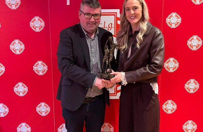 Paddy Doherty presents Yvonne Bonner with the Senior Ladies Player of the Year.
