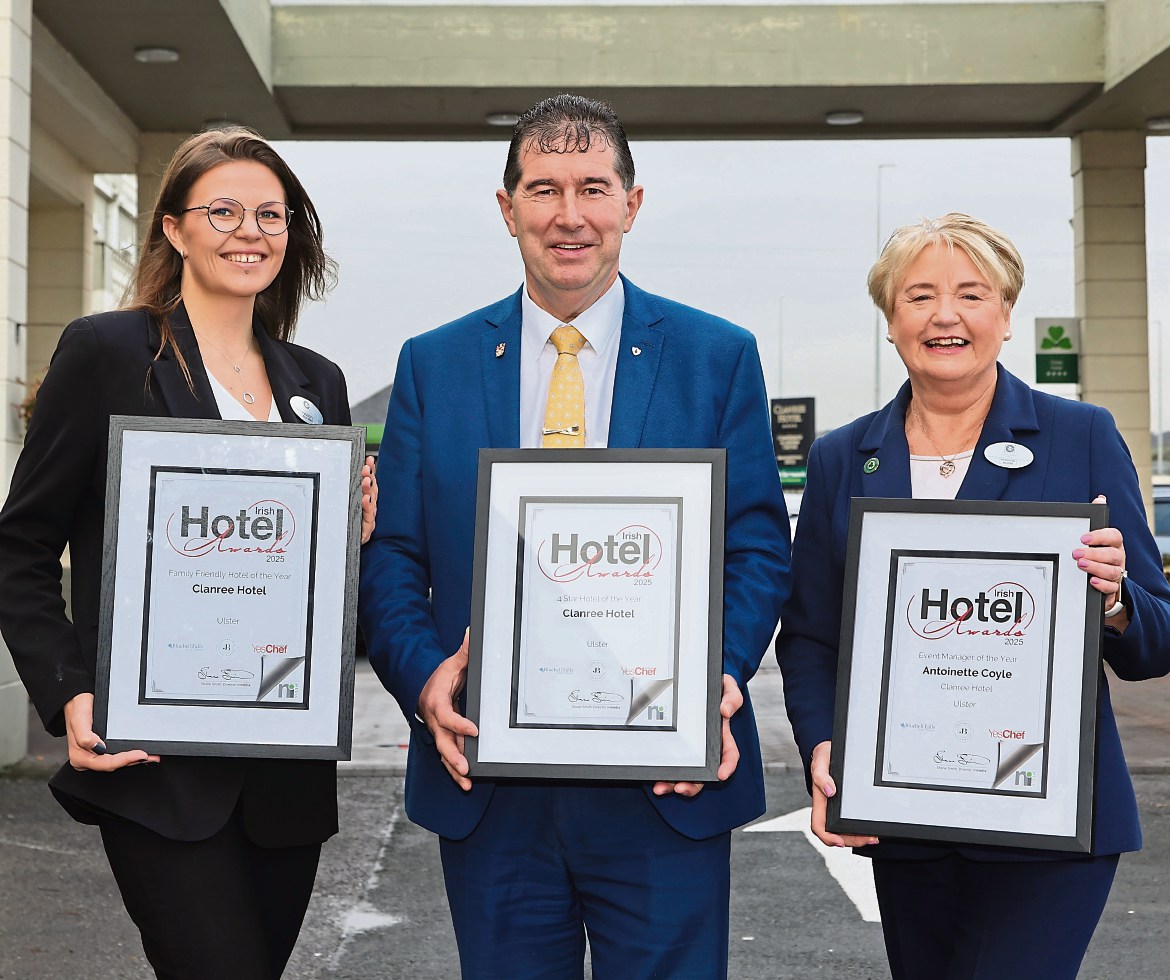 Antionette Coyle, assistant general manager of the Clanree Hotel, won the ‘Event Manager of the Year’ award, while the hotel also claimed ‘Family-Friendly Hotel of the Year’ (Ulster), ‘Business Hotel of the Year’ (Ulster) and ‘Four Star Hotel of the Year’ (Ulster).