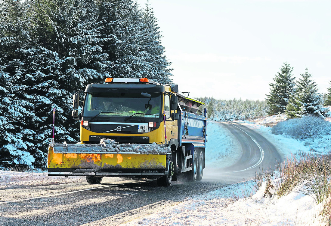 DONEGAL County Council’s gritting service will be treating designated routes this evening and again first thing on Tuesday morning.