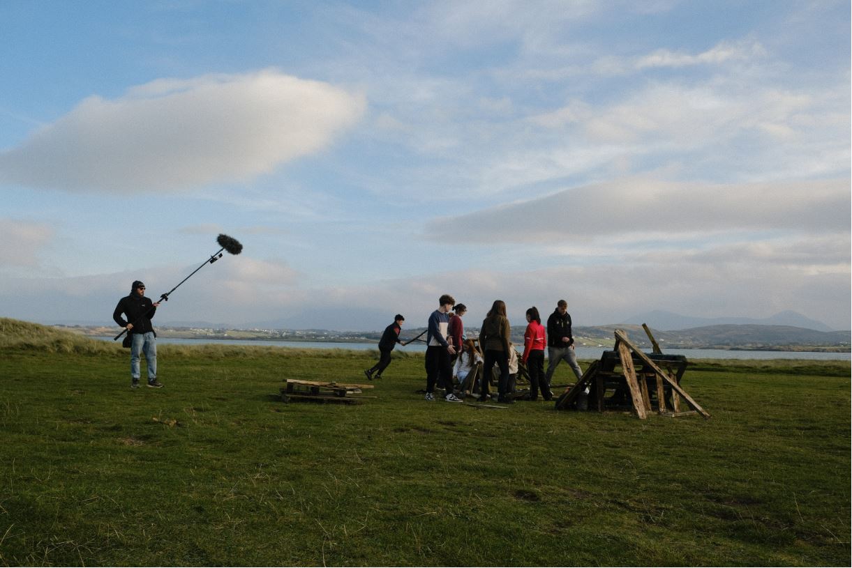 In contrast, most of the young actors are first-timers. During the development of the project, Daniel worked closely with the Amharclann Ghaoth Dobhair to run various script workshops and engage with local teenagers. As a result, first-time actors from the three Gaeltacht parishes were cast, including Rheddyn Ní Ghairbheá, Odhrán O’Donnell, Fionnuala Nic Aodha Bhuí, Fachtna O’Briain, Huidí Mac Ghairbheá, and Zirar Ameer.