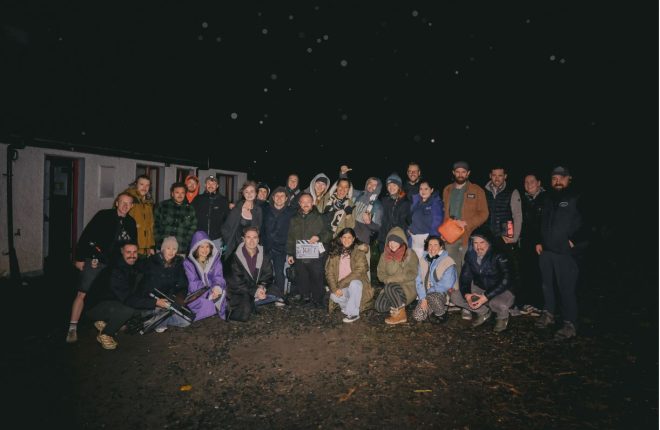 The cast and crew pictured together as filming wrapped up.