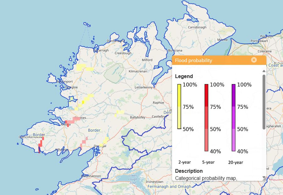 The European Flood Awareness System (EFAS) has also issued a Flash Flooding warning for the border region in the following river systems: Glen, Eany, Eske, Owenea, Owentocker, Gweebarra, Crolly & Reelin.