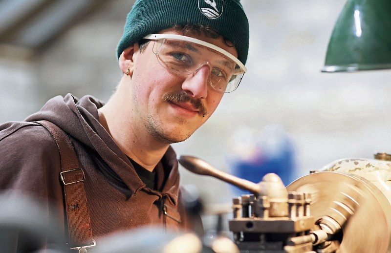 Developing his own process for creating the perfect low whistle, Callum begins by turning an aluminium tube on a lathe, before drilling holes and applying a finish.