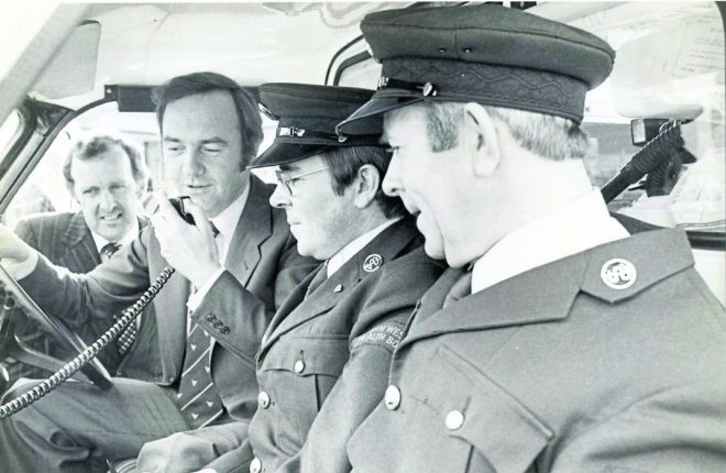 Former health minister Dr. Michael Woods pictured in the 1990’s as he launches a new communications system for the Donegal Ambulance Service during a visit to Letterkenny. Included are Henry Murray and Pauric McCann.