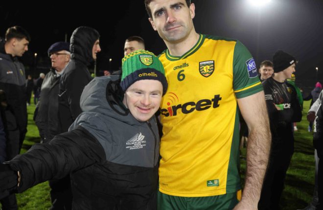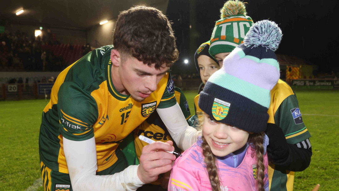 Eoin McGonagle with his hero and clubmate Caolan McGonagle at the end of the game.
