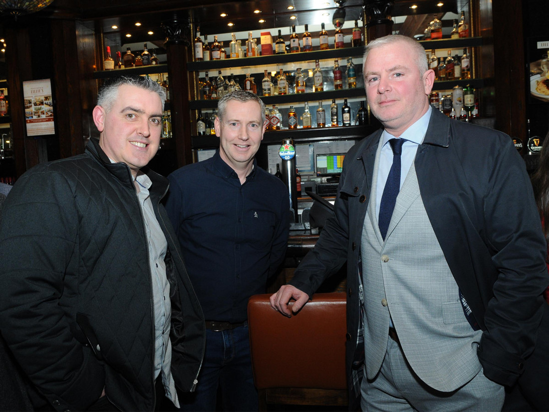 St Eunan’s College staff Barry McDaid, Derek Doherty and Paul Devenny at the retirement function for Eilish Masterson in the Mount Errigal Hotel, Letterkenny on Friday night.