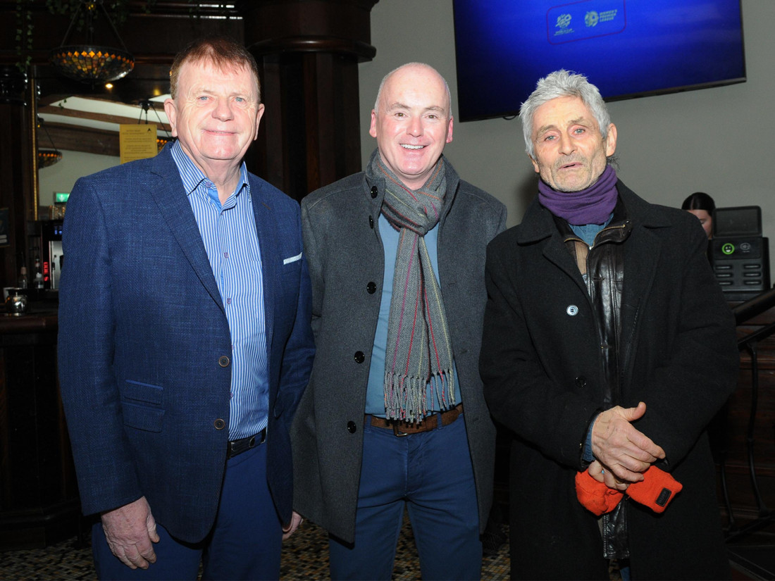 St Eunan’s College staff Edward Harvey, Damien McCrory and James Finnegan at the retirement function for Eilish Masterson in the Mount Errigal Hotel, Letterkenny on Friday night.