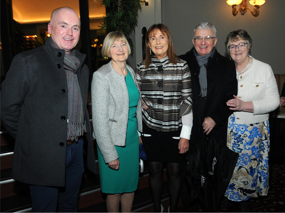 St Eunan’s College staff Damien McCrory, Margaret McCarthy, Martina Gormley, Fr Michael Carney and Marie Tres Gillespie at the retirement function for Eilish Masterson in the Mount Errigal Hotel, Letterkenny on Friday night.