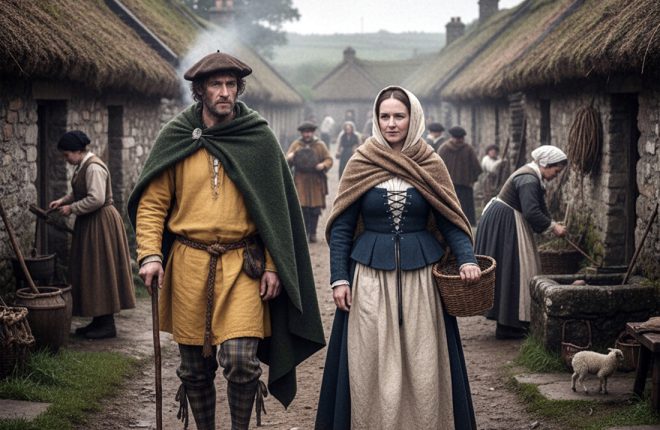 The type of middle class clothing typically worn in a 17th century trading town – like Letterkenny in times gone by.