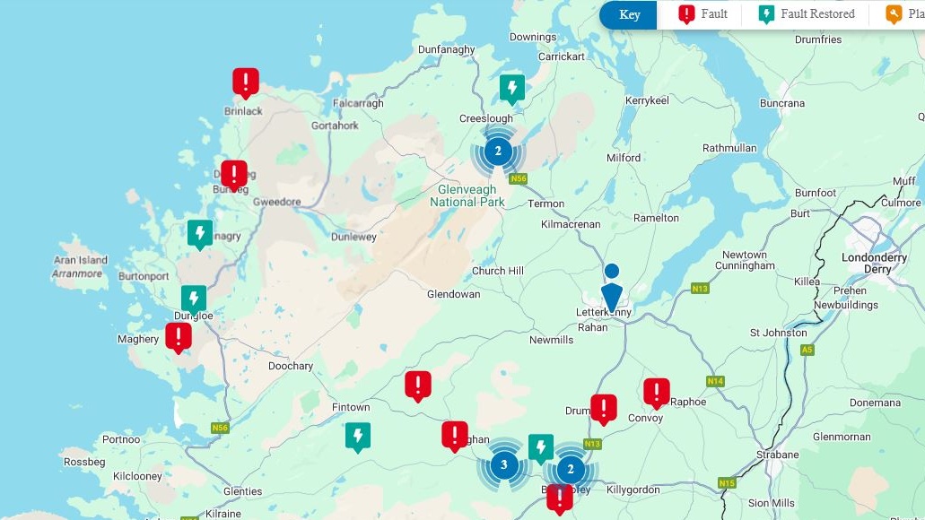And there are more outages this morning with areas of the Twin Towns, Cloghan and Drumkeen also impacted.