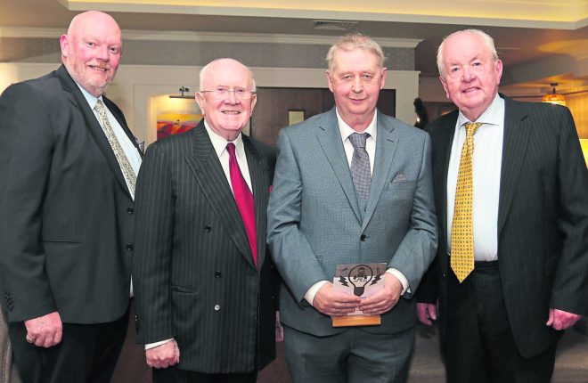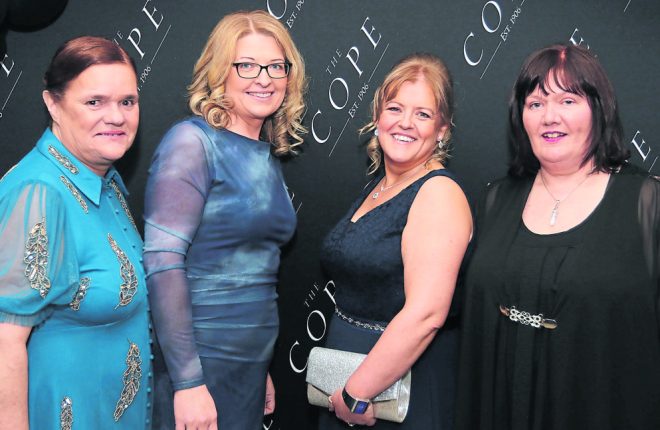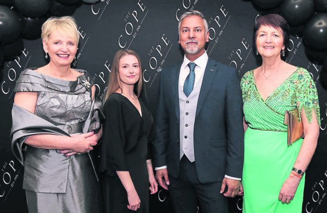 Gerry O’Donnell (3rd from left) received an outstanding service award at the Cope’s 120th anniversary ball. He is pictured with, from left, Mark Sharkey, CEO, Pat the Cope Gallagher TD, board member, and Pat Dunleavy, board chairman.
