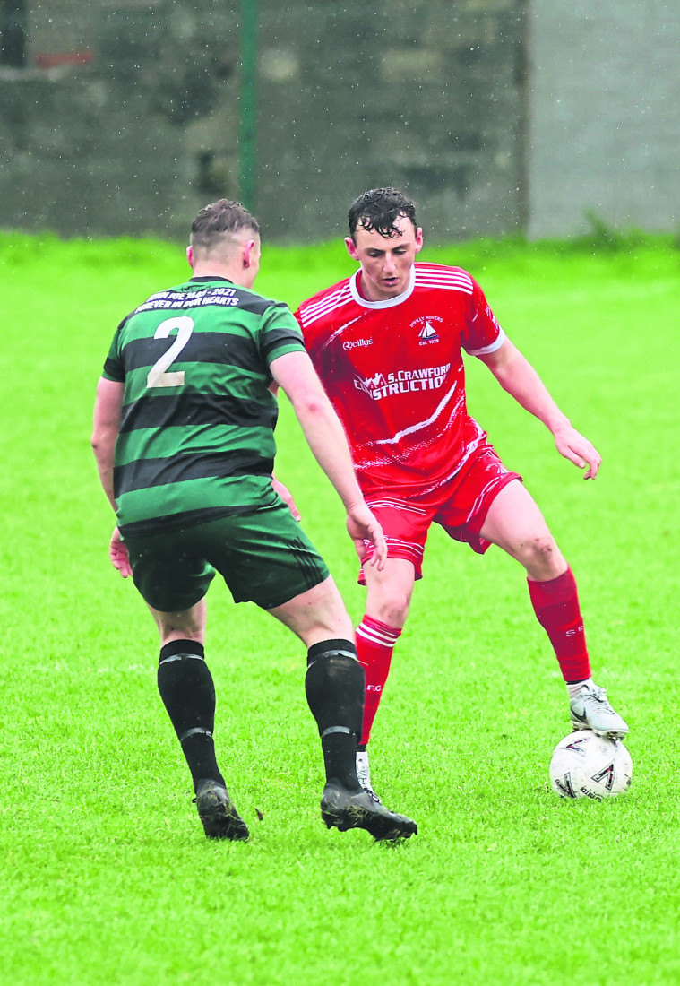 A corner in from the right was headed onto the bar by Kevin Loughrey, and after a short scramble, Calum McAteer was alert to blast the ball home.