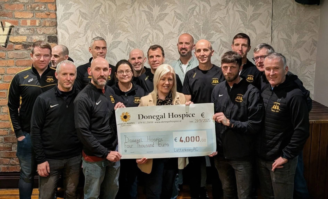 Extending her thanks on behalf of the Donegal Hospice, Isobel Doherty, Chairperson of The Donegal Hospice Directors CLG, said: “We were absolutely delighted when Darren called in to tell us that Letterkenny Ac had raised €4,000 through its members running the Dublin Marathon back in October. We are most grateful for all your efforts and for choosing the Donegal Hospice as the main beneficiary this year.”