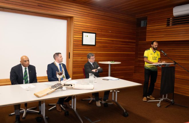 Founding Member, Rammohan Sama, speaking at the Mayor’s Reception for Letterkenny Cricket Club.