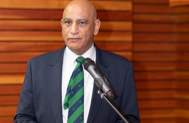 Bobby Rao, Former International Cricketer, speaking at the Mayor’s Reception for Letterkenny Cricket Club.