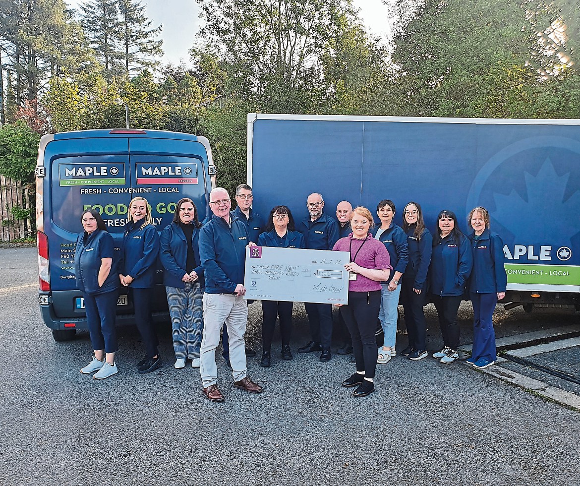 THE Donegal owned and operated Maple Group has proudly announced the success of its recent charity drive which has raised an incredible €3,000 in aid of Cancer Care West Donegal.