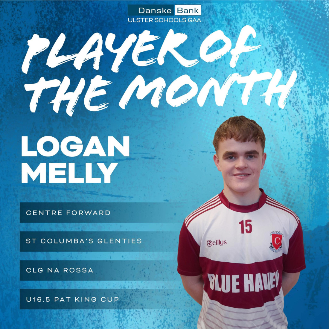 St Columba’s Comprehensive, Glenties student Logan Melly has been awarded the Danske Bank Ulster Schools GAA Player of the Month for November.