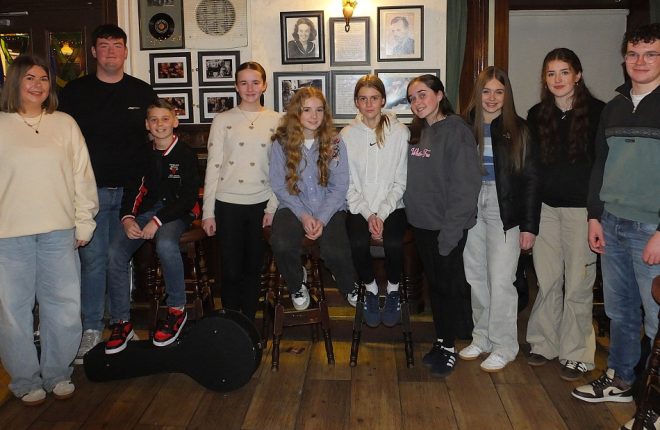 Members of the talented group An Crann Óg pictured before going on stage at the opening of Scoil Gheimhridh Ghaoth Dobhair.
