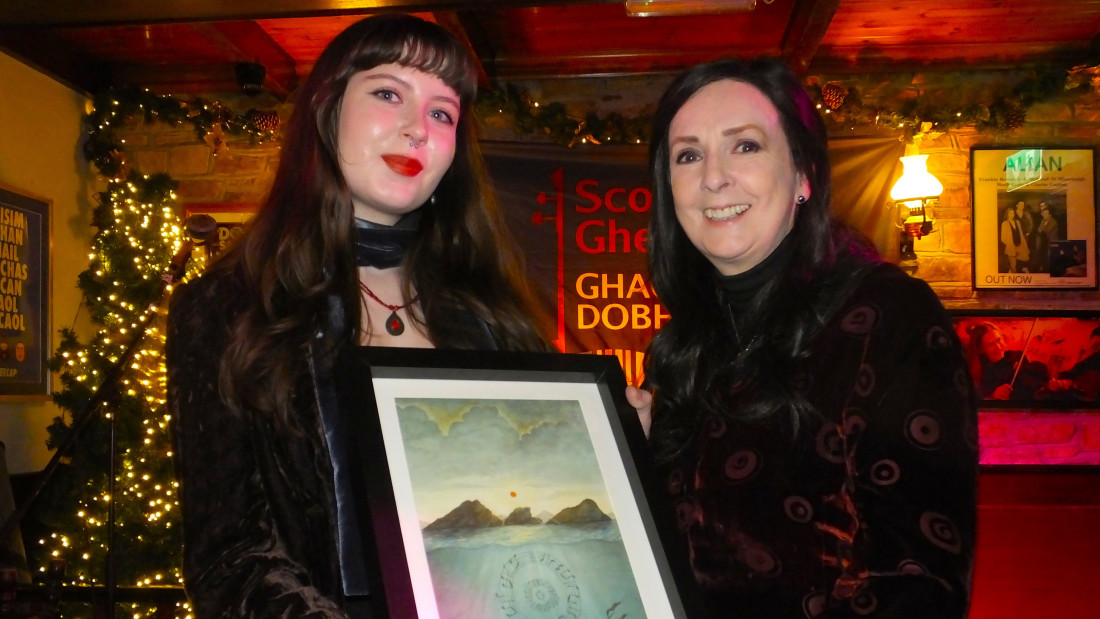 Moya is pictured with Aifric Nic Niallais who made a presentation to Moya on behalf of the organising committee.