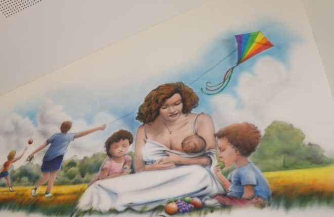 The mural aims to create a welcoming space for families and promote public understanding of breastfeeding as a natural and important aspect of infant development.