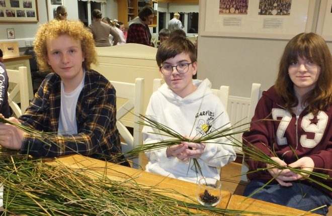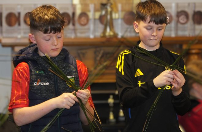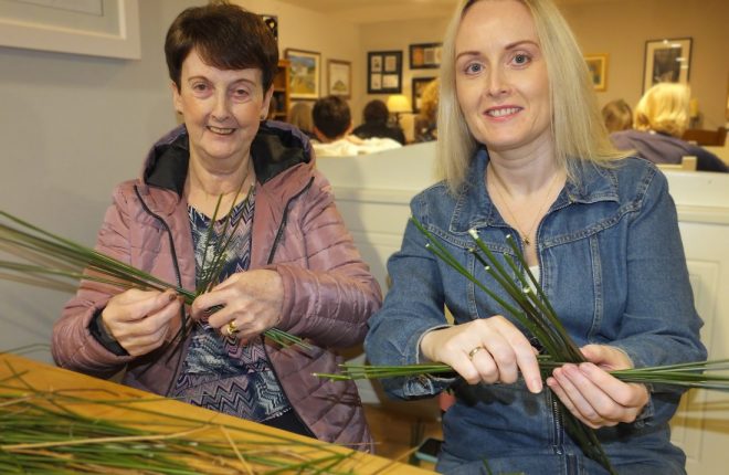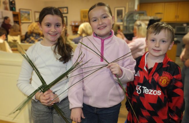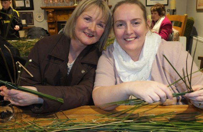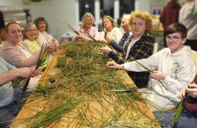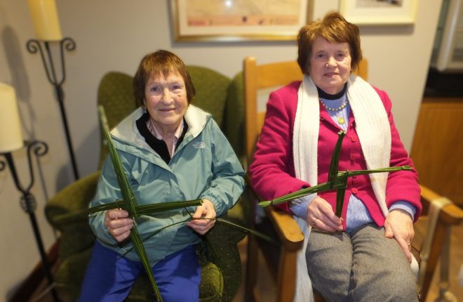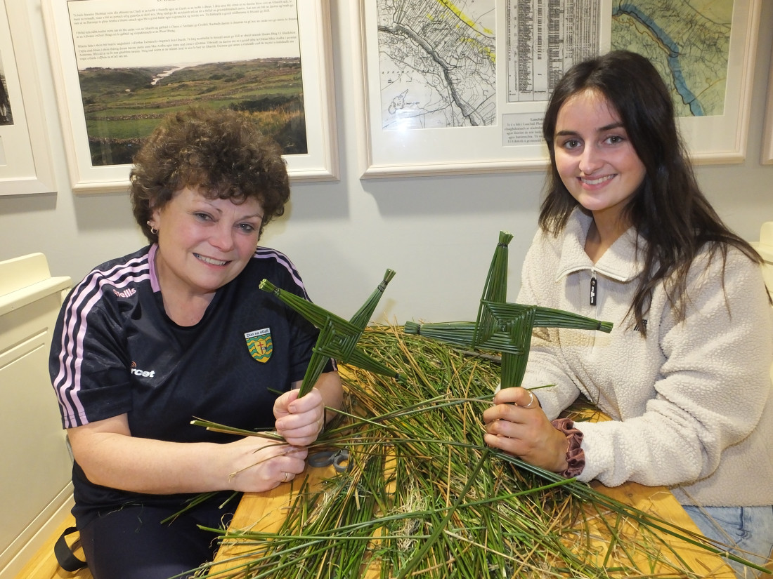 A large crowd gathered at Ionad Naomh Pádraig Dobhar yesterday to craft St Brigid’s crosses. Following the workshop, Fr Brian O’Fearraigh blessed the crosses.