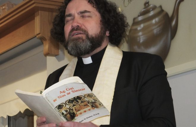Fr. Brian Ó Fearraigh, P.P., saying prayers before the blessing of the crosses.