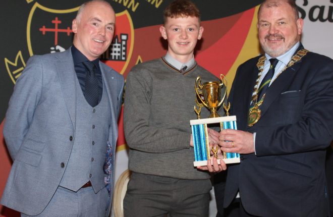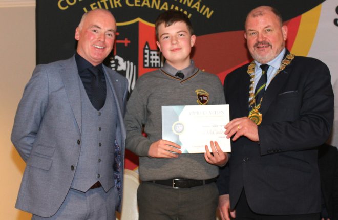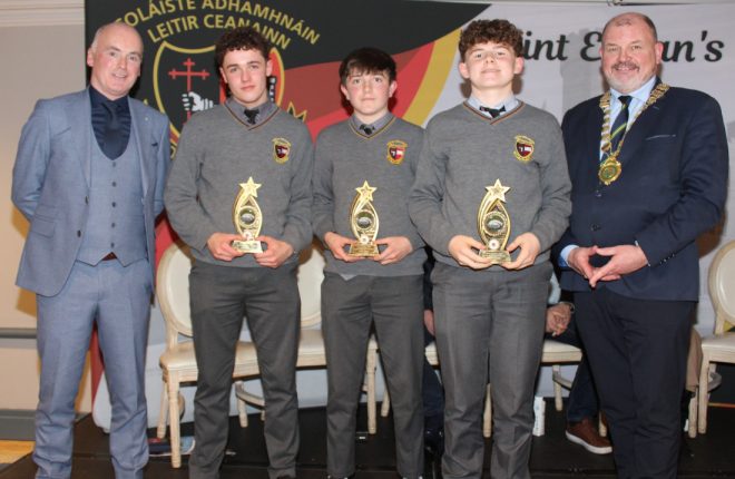 Kieran Neely, Ciaran Hilley and Eoghan Callaghan receive attendance awards
