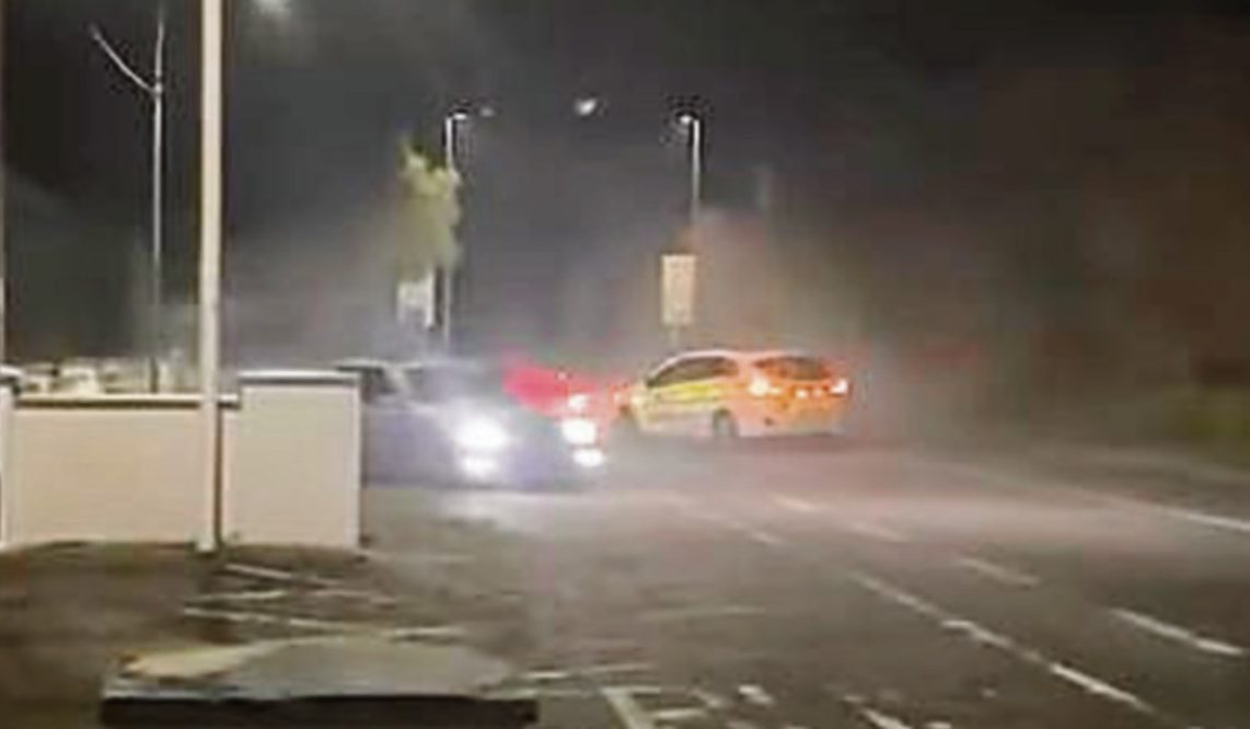 A shocking video of the dangerous driving outside the primary school on the N56 was widely shared on social media. It showed two cars being chased by Gardaí, with one speeding past onlookers who recorded the incident.