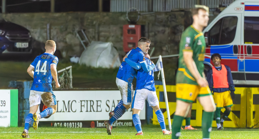 The Finn Park residents continued to pursue the crucial second goal following Bradley’s effort, coming close on several occasions.